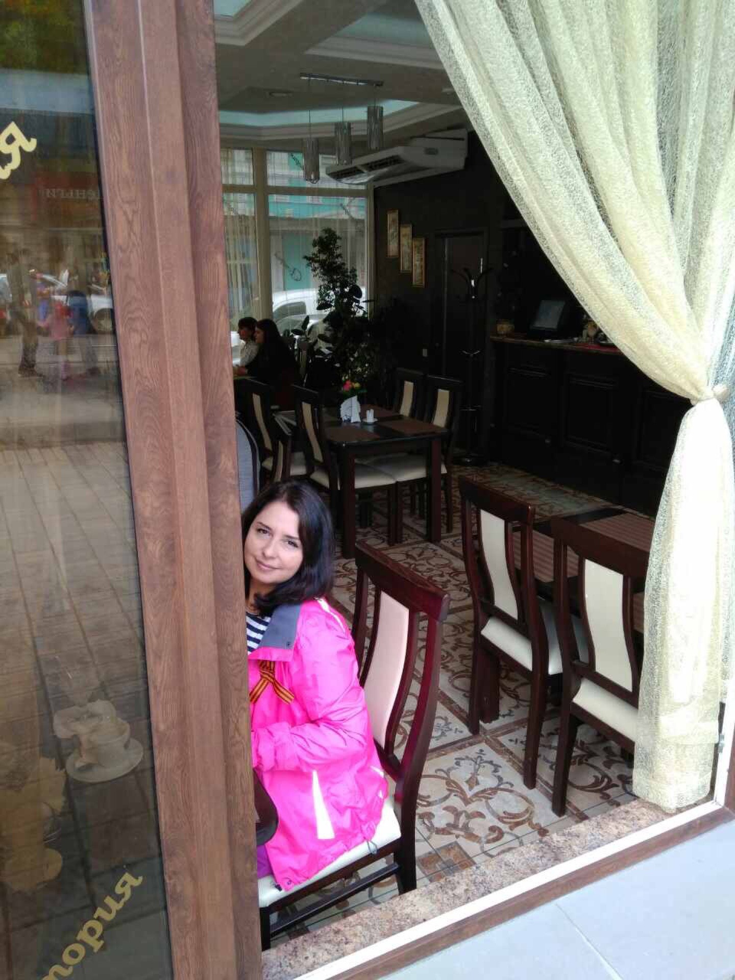 Зашли выпить кофе во время празднования 9 мая. Удобно смотреть на гуляющих и проезжающих, кофе вкусный, десерты приемлимые, персонал милый.