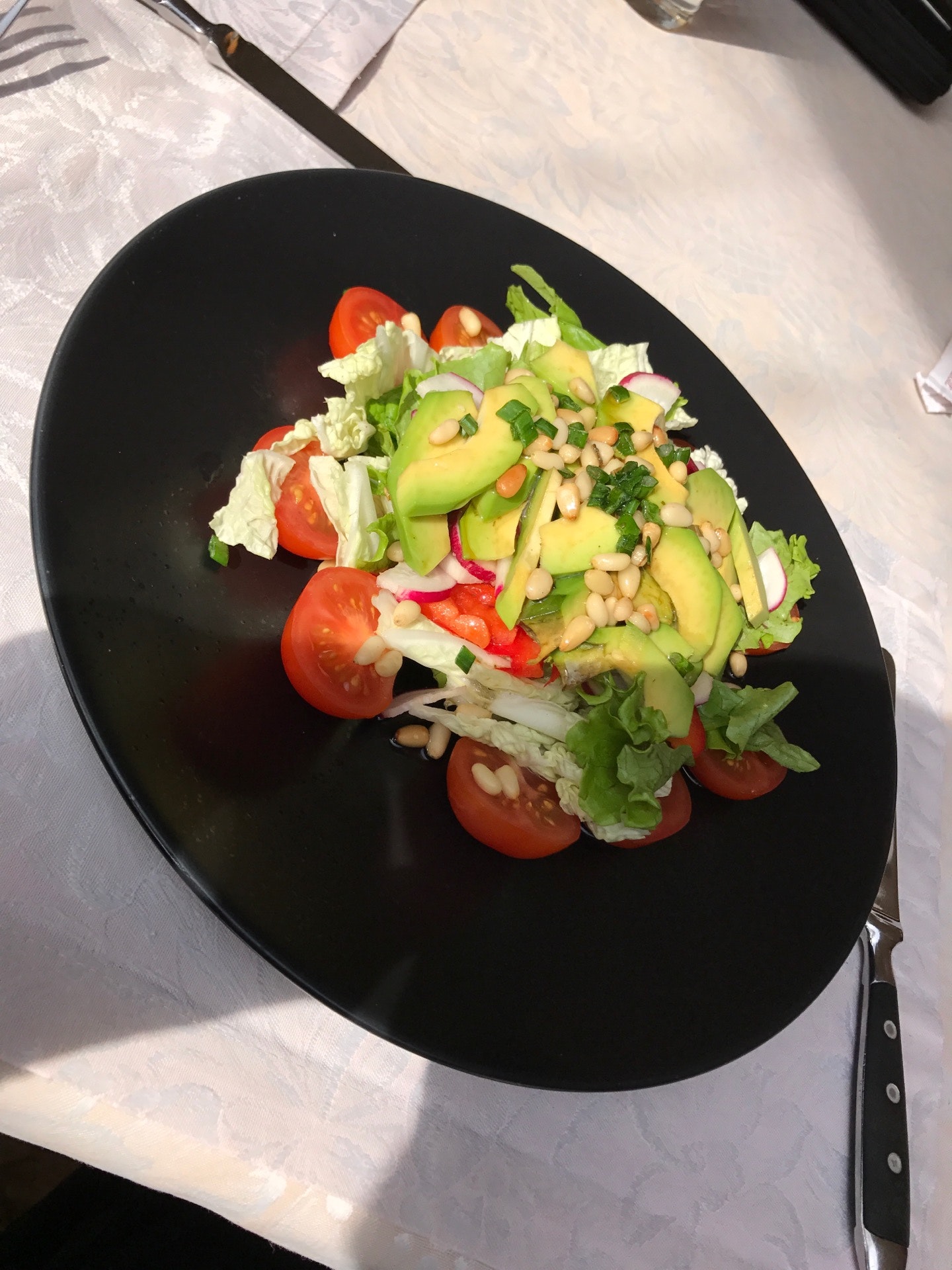 Приветливый персонал, вкусная кухня, хорошее обслуживание👍🏼 Очень вкусный салат Цезарь и чай с фруктами😍